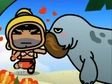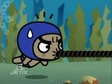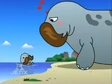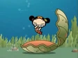Muji refuses to give up his hunt for the dugong and gets into another fight with Mermaid Pucca. She pulls out a hammerhead shark which Muji grabs with his mustache. But this was her plan as she winds up the mustache so it spins like a propeller to drag Muji off into the distance. She's satisfied with a job well done, but in the distance, an odd shadow is coming closer.