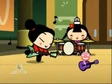 Tobe is still doing his slam performance against Garu but when he takes the insults one too far by mentioning Pucca, Garu snaps and it becomes a fight of instruments. Or as Linguini puts it, a true "battle of the bands.