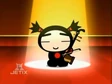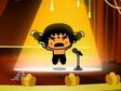 Despite the fight going on, Pucca's band takes the stage and performs their song with Abyo (in his dress) as their lead singer. And it's clear right away this one is just what the chefs were looking for (plus Ring Ring appreciates Abyo's look). Underneath the floor, the ninjas finally manage to set off their explosives but these become an impressive pyrotechnics display for Pucca's band, which draws the cheers of everyone. The band take their bows and Abyo remarks on how comfortable it is to wear a dress, though the questioning looks of the girls and Garu make him take it back.