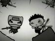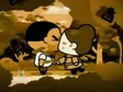 Tobe and his ninjas sneak into the theatre (somewhat confused in “Garu’s” choice of films) and swiftly make their way to the row directly behind the couple. Garu is alerted to their presence and leaves a clone of himself for Pucca while he goes to fight Tobe. Pucca is oblivious to the battle going on in the theater as Tobe and his nemesis duke it out (though temporarily interrupted by Santa rudely talking on his phone). The ninjas are thoroughly beaten and the remaining combatants crash through a wall, ending up in the theater where Abyo is watching a Kung Fu movie of his own, believing the move-for-move battle on the stage is just a 3D addition. The two ninjas become aware of the movie going on and pause their combat to watch it.