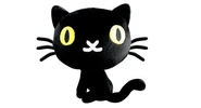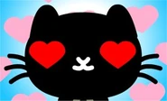 Mio is a black cat with yellow eyes, a white snout and 6 black whiskers (3 on each side of his face).