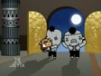 The Xombies bring the wailing Baby New Year back to Muji’s lair. Muji is overjoyed that he will no longer age, but cannot figure out why the infant keeps crying. His minions try to comfort the child with skeleton mobiles and removable body parts, but their efforts just freak the baby out more, causing him (as well as Muji) to start screaming.