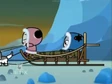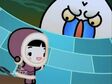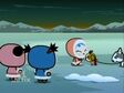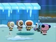 Going back to Garu, the increasing snowstorm has made it impossible for the dogs to continue onwards. Luckily, Pucca is more than capable to take over, pulling the sleigh and all its occupants on their way. Ching and Abyo flee the Snow Beast, taking cover inside various igloos. Abyo gives away their location and while Ching escapes, Abyo again challenges the beast. He is soundly flattened.
