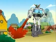 In a whirlwind, the noodle girl gathers up all the garbage and, forming a massive wrecking ball from it, drops it all on top of the Lougie restaurant, destroying it in the process. Pucca considers the matter settled but the Lougies won’t take this lying down. Hoping into their RV, the automobile transforms into a giant robot (a transformer, if you will) that fires barbeque sauce at her. Though Pucca is nimble enough to avoid the attacks, her attempts to fight back are deflected and she is swatted through the Goh-Rong wall, landing in her bedroom. The Lougies, declaring they cannot be stopped, take their giant robot on a rampage through town.