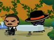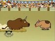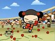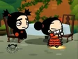 and Garu, donning a matador’s costume provided by Pucca, attempts to battle him. Able to shoot throwing stars, Tobe proves too strong for the ninja until Pucca smashes a barrel in the ring, causing the bull to crash and appear defeated. The machine quickly recovers and plows Garu into the ground, prepared to trample him.