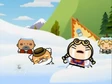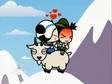 Up on the Alps, Santa is mountain climbing while Pucca runs down the cliff face and sends him freefalling to the ground. At the same time, Garu is climbing the mountain from a different side while the Swiss men follow after. He rides a goat to the top and after they try to lasso him down, he takes them all off the mountainside. The three are falling fast but Garu saves himself with a parachute and leaves the burly men to hit bottom. Though he’s lost the brothers, Heidi is waiting for him on the ground and catches him when he lands. The wedding can now begin.