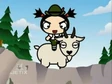 On top of the mountain, Pucca and Garu both are on goat-back with her stealing kisses as they make their way home.