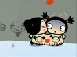 The noodle girl pounces on him, trapping him in her new sweater made for two. While Soo returns to give more advice, he becomes distracted as he maidens greatly admire his clean-shaved face, courtesy of Pucca. Garu cannot escape Pucca's embrace this time.