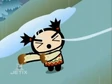 Garu has reached the mountain top and can see a temple in the distance. But Tobe takes this as the moment to ambush him and launch a battle for who will get to the temple first. Tobe brandishes the Sacred Tools but they can't hold up against Garu using Pucca's sweater as a weapon. Their fight breaks the ice beneath their feet and both fall. Tobe again turns to his sacred tools and uses a grappling hook to catch a passing plane which drags him through the air and smacks him into several mountain tops. Garu's sweater has caught a threat on the cliff, unraveling but ultimately saving him from hitting the bottom.